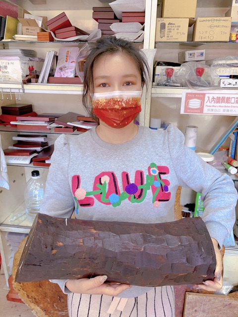 剛切下來,呈現橘紅色火焰文、是頂級的老油料