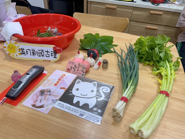 - 煮熟鴨蛋1個 「 含意:嬰兒的身形跟鴨蛋的形狀一樣、身材健美」