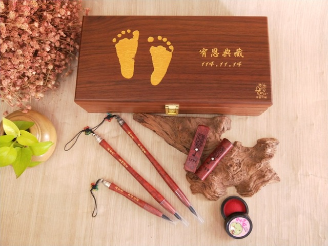 完整儀式: 包含傳統淨身、剃頭儀式、做膽祈福,並可訂製高品質胎毛筆、臍帶章、乳牙盒。