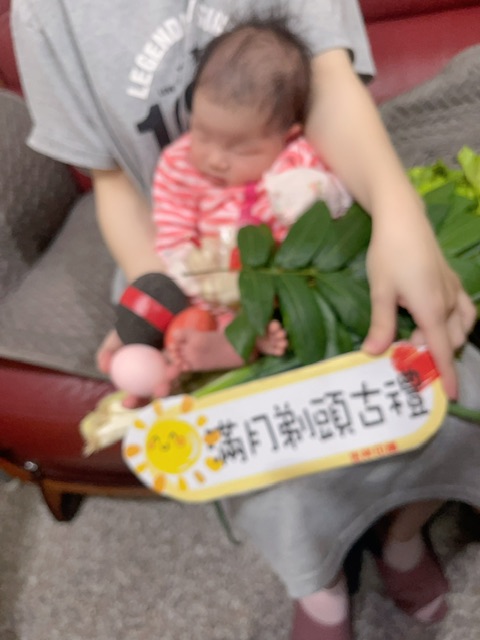 - 煮熟鴨蛋1個 「 含意:嬰兒的身形跟鴨蛋的形狀一樣、身材健美」